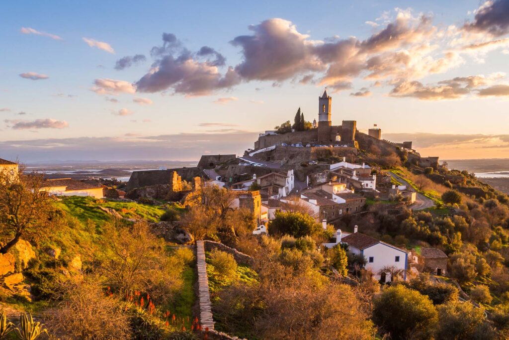 Monsaraz sits high above the Alentejo plains, where whitewashed houses cling to ancient stone walls and time feels optional. Spring brings green fields, warm days, and near-total calm.